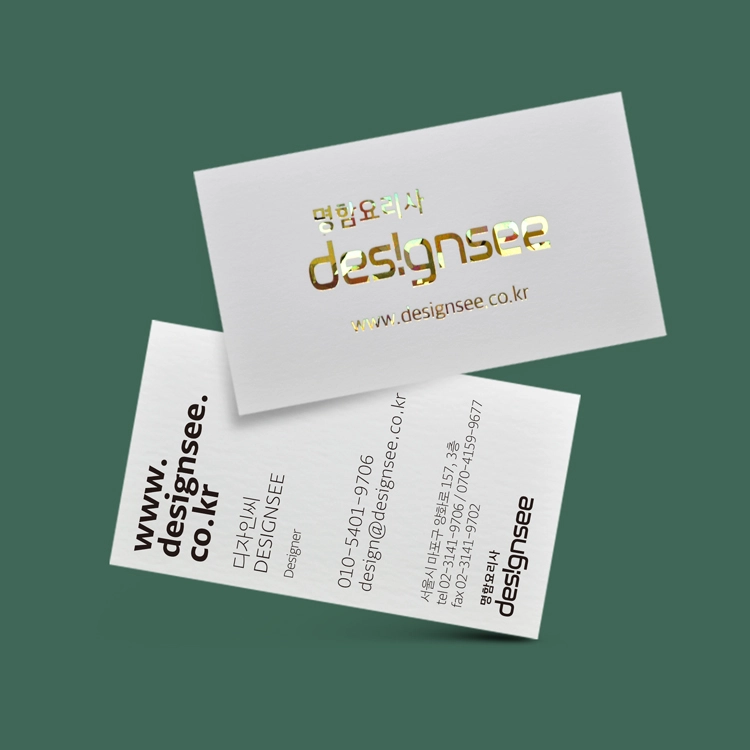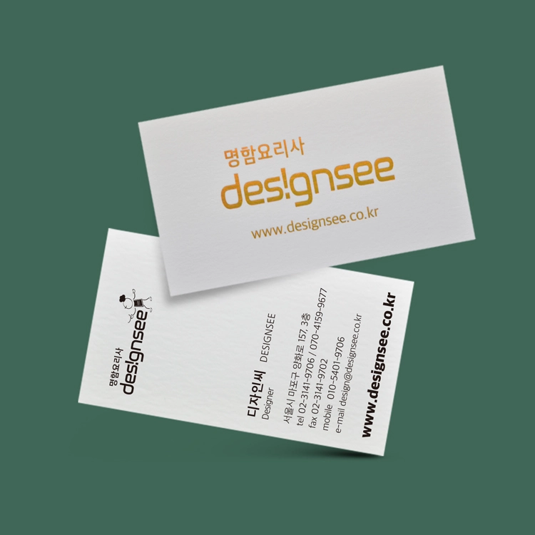 명함의 내용변경과 디자인 수정작업을 거쳐 제작되는 맞춤 디자인명함.