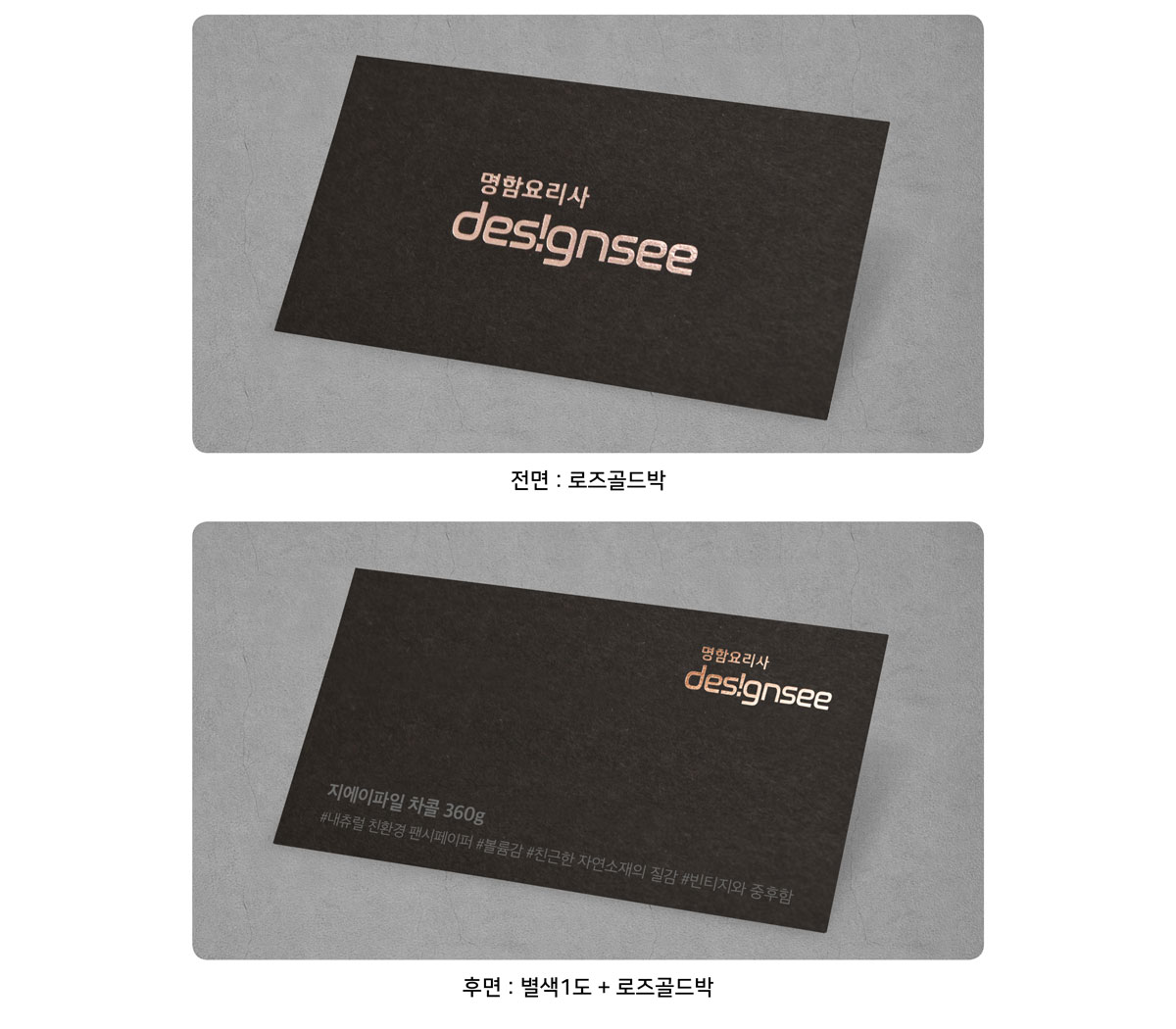 로즈골드박(양면) 명함인쇄 프리미엄 용지 특수지 그문드코튼 지에이파일 앤틱블랙 쿠션지 명함