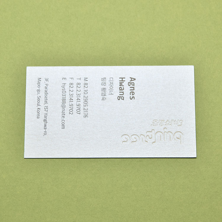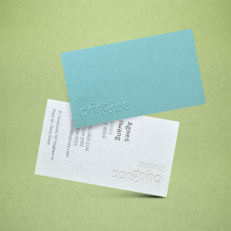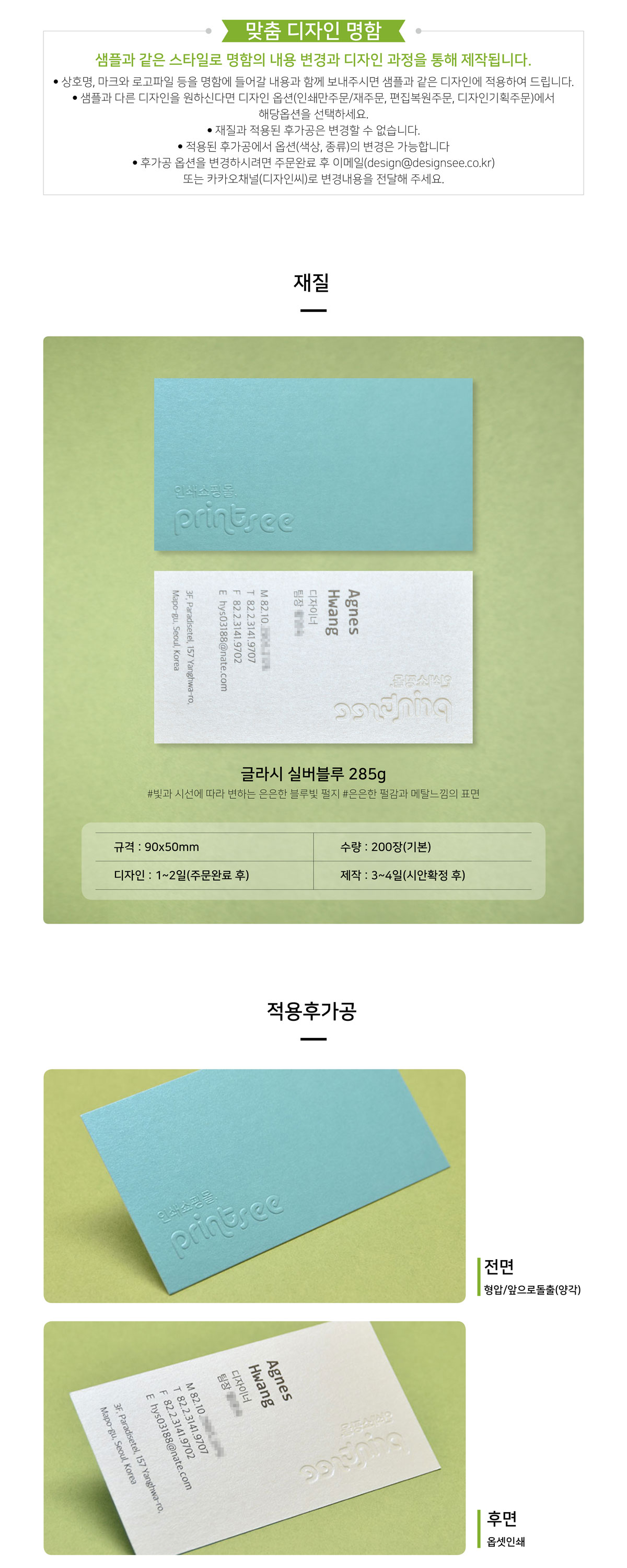 디자인 명함제작 심플 글라시 실버블루 285g 형압(양각) 옵셋인쇄 명함