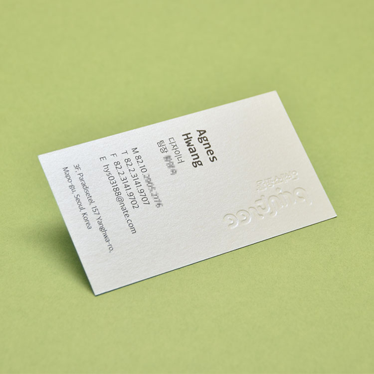 후가공으로 전면(형압/양각), 후면(옵셋인쇄)를 적용한 심플한 디자인 명함입니다.