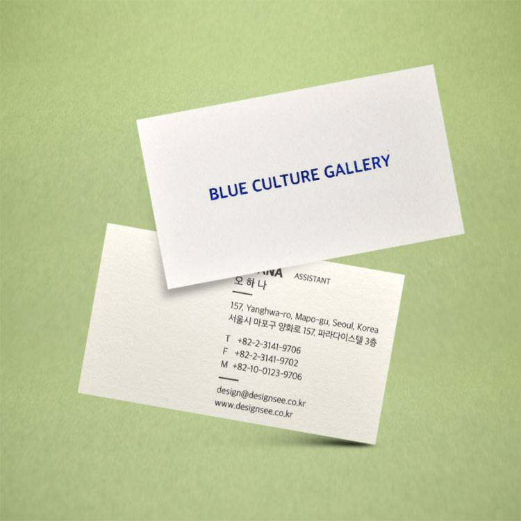 전면(청박), 후면(먹1도)를 적용한 심플한 디자인 명함입니다.