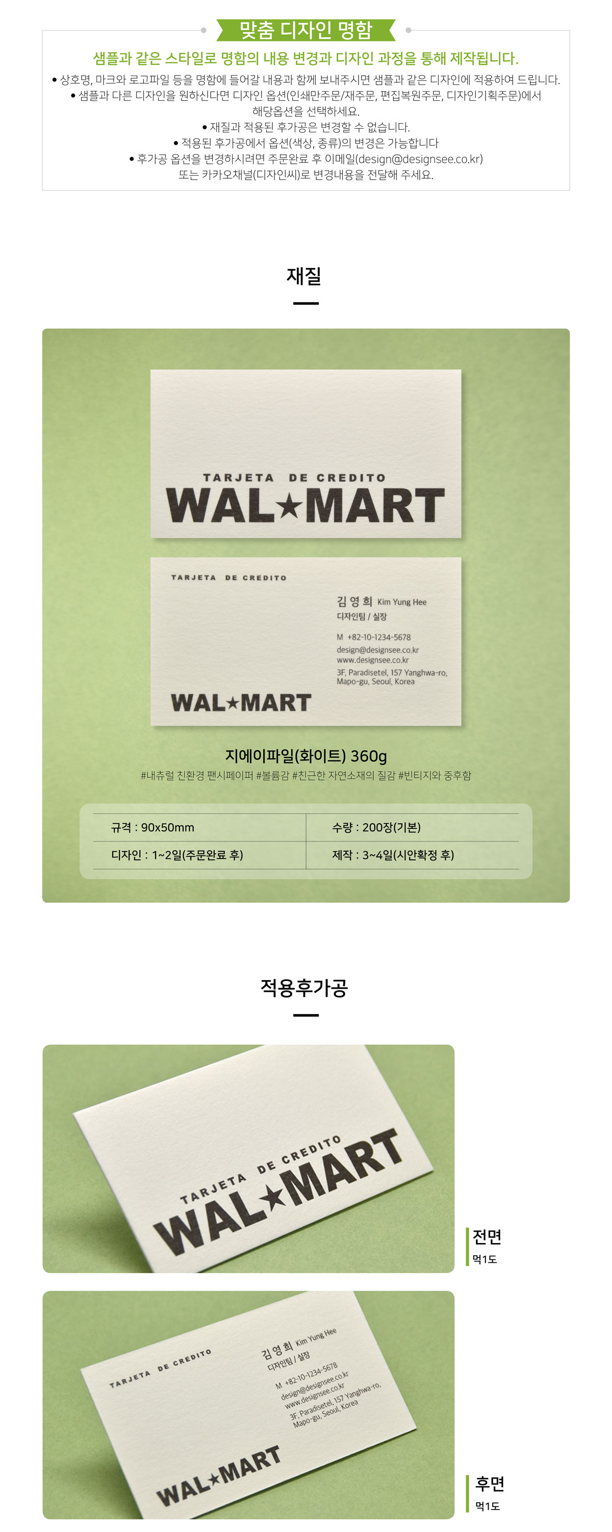 디자인 명함제작 심플 지에이파일(화이트) 360g 먹인쇄 명함