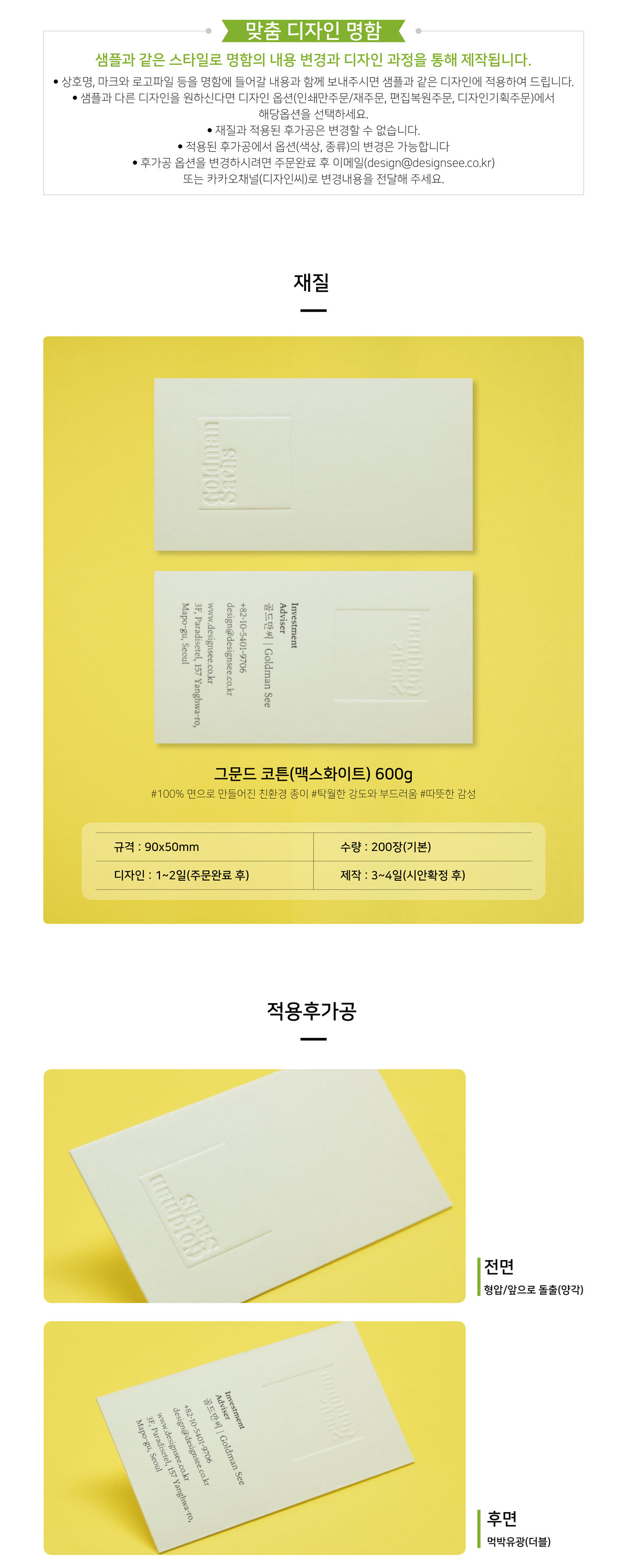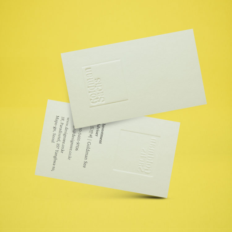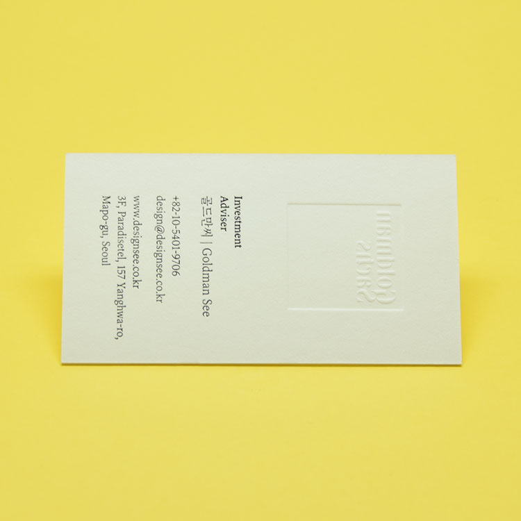 디자인 명함제작 클래식 그문드코튼(맥스화이트) 600g 형압(양각) 먹박 명함