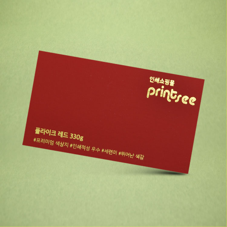 디자인 명함제작 모던 플라이크 레드 330g 금박 유광 양면 명함