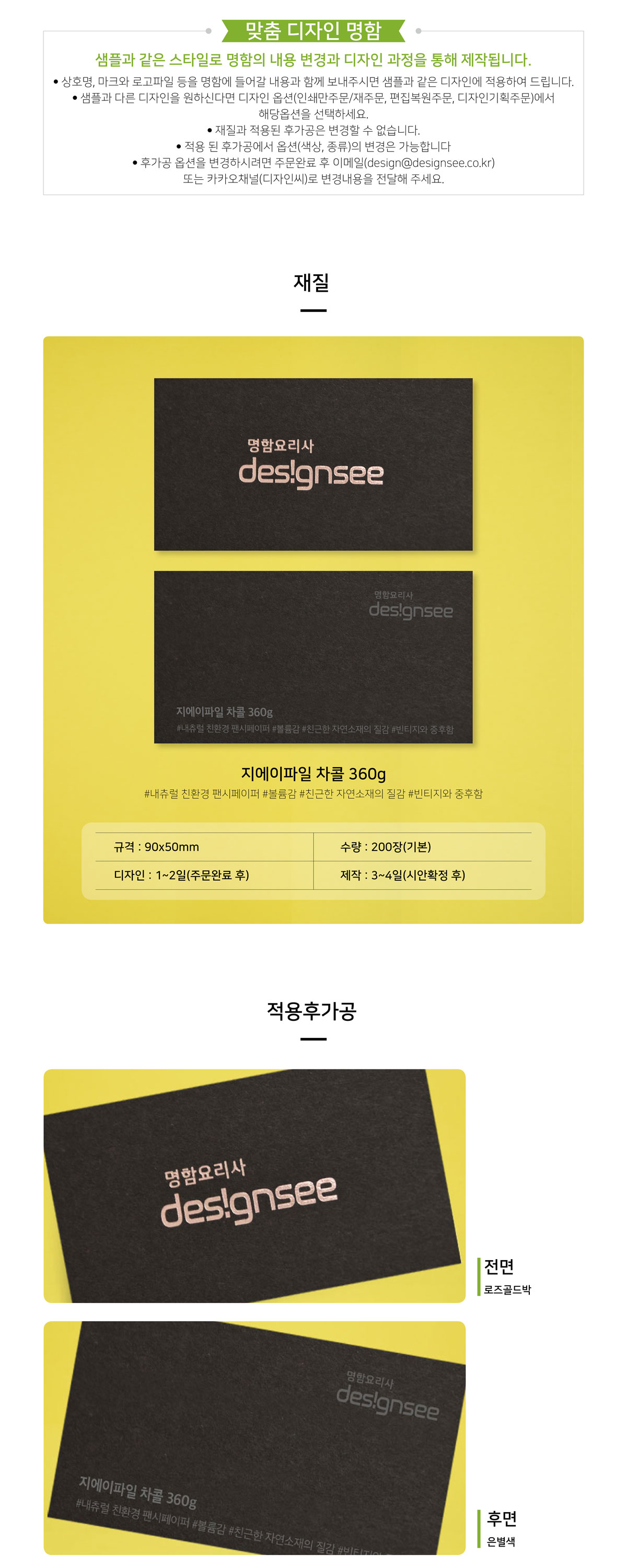 디자인 명함제작 스페셜 지에이파일 차콜 360g