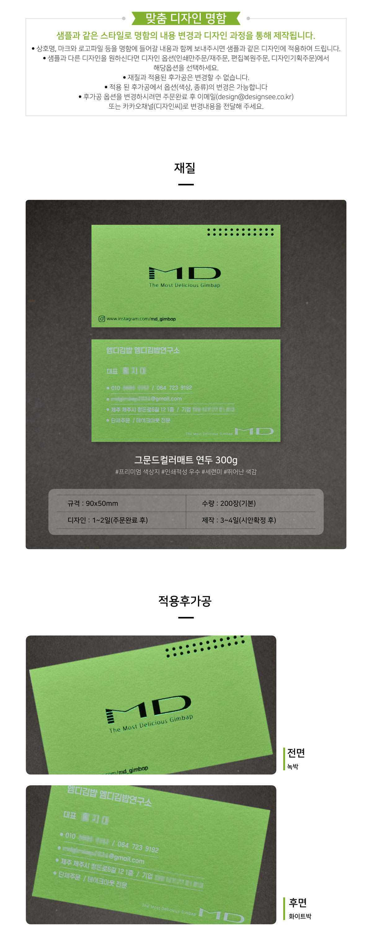 디자인 명함제작 스페셜 그문드컬러매트 연두 300g
