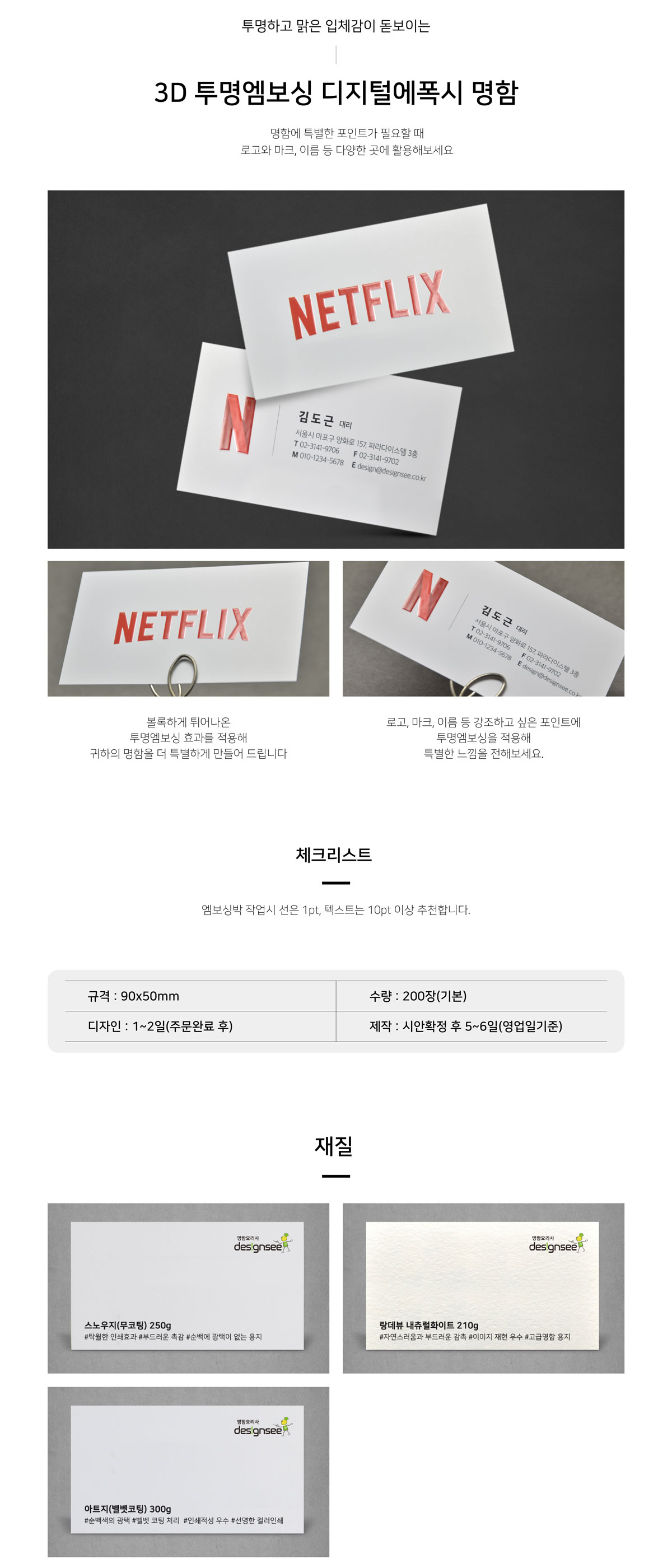 투명엠보싱 3D 디지털에폭시 양면 명함제작 고급지 명함