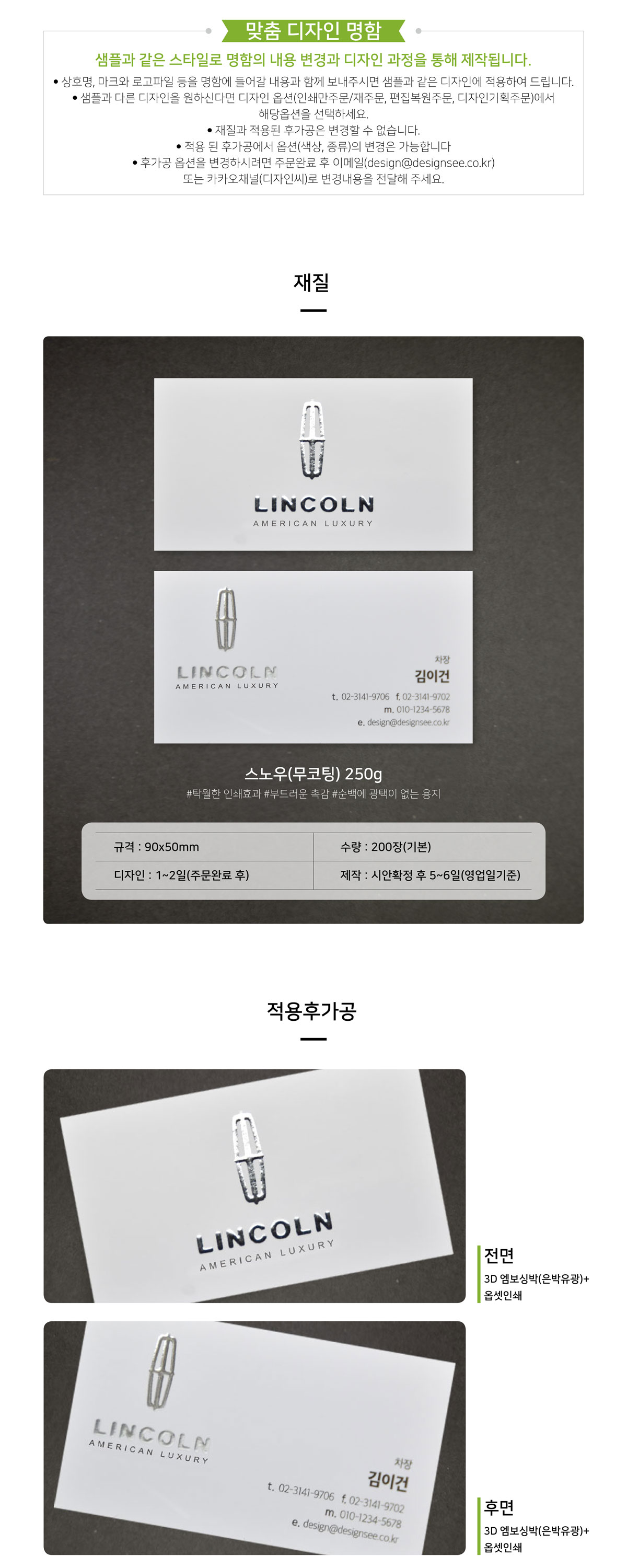 스노우(무코팅) 250g 엠보싱은박(유광) 양면 3D 디지털박 명함인쇄