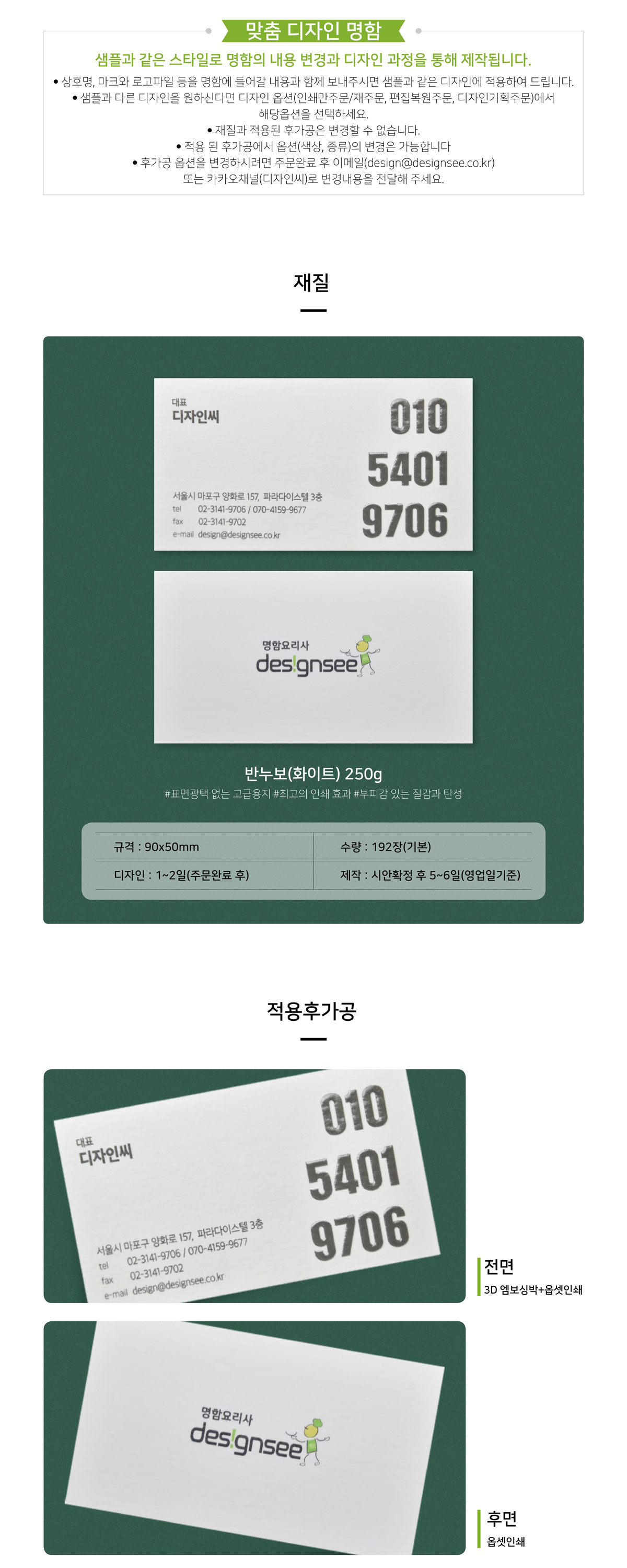 반누보(화이트) 250g 디지털에폭시 3D 투명엠보싱 단면 명함인쇄