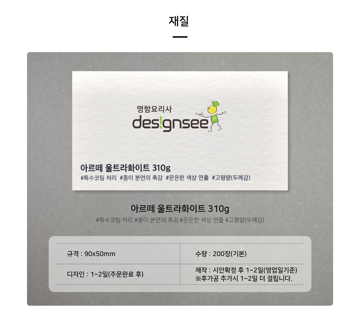 재질별명함 수입지 명함 아르떼 울트라화이트 310g