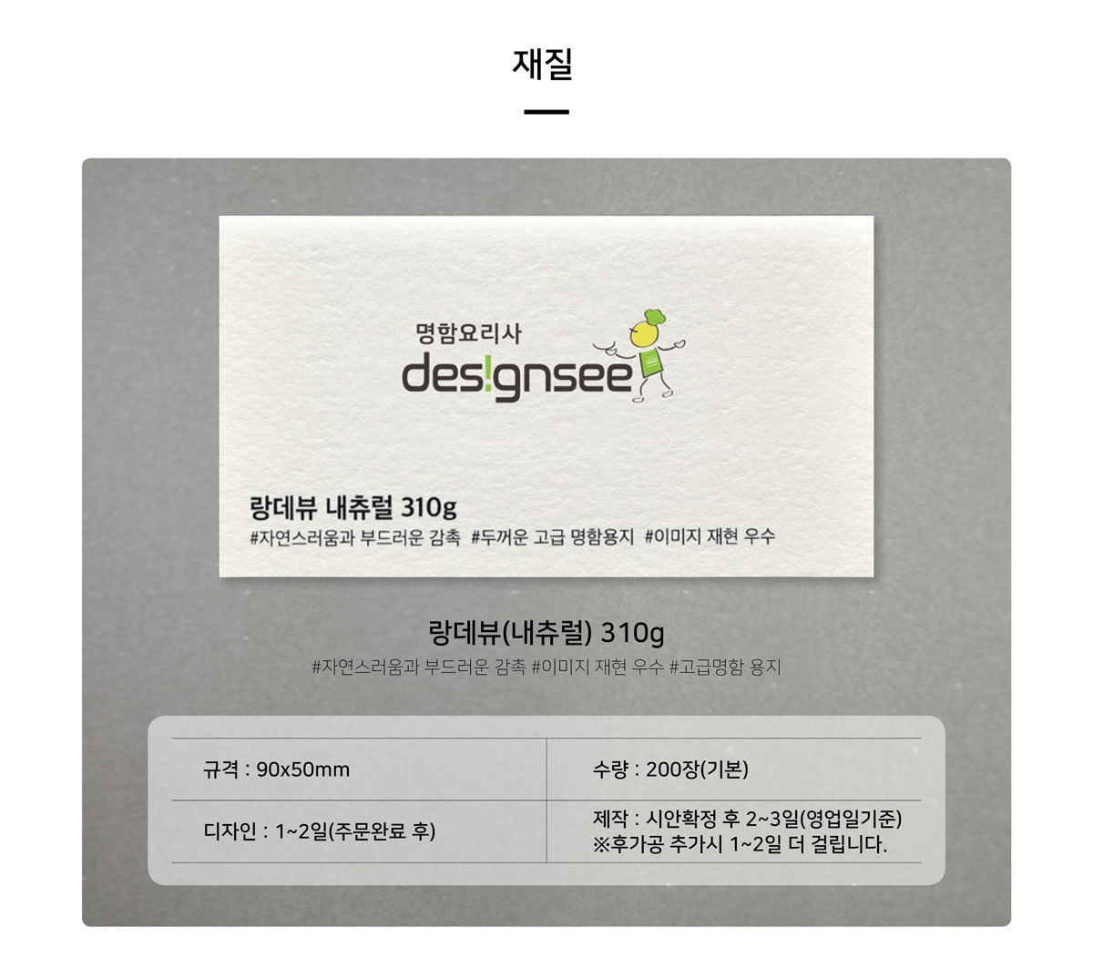 자연스러움과 부드러운 감촉, 두꺼운 느낌의 명함용지로 이미지 재현에 우수합니다.