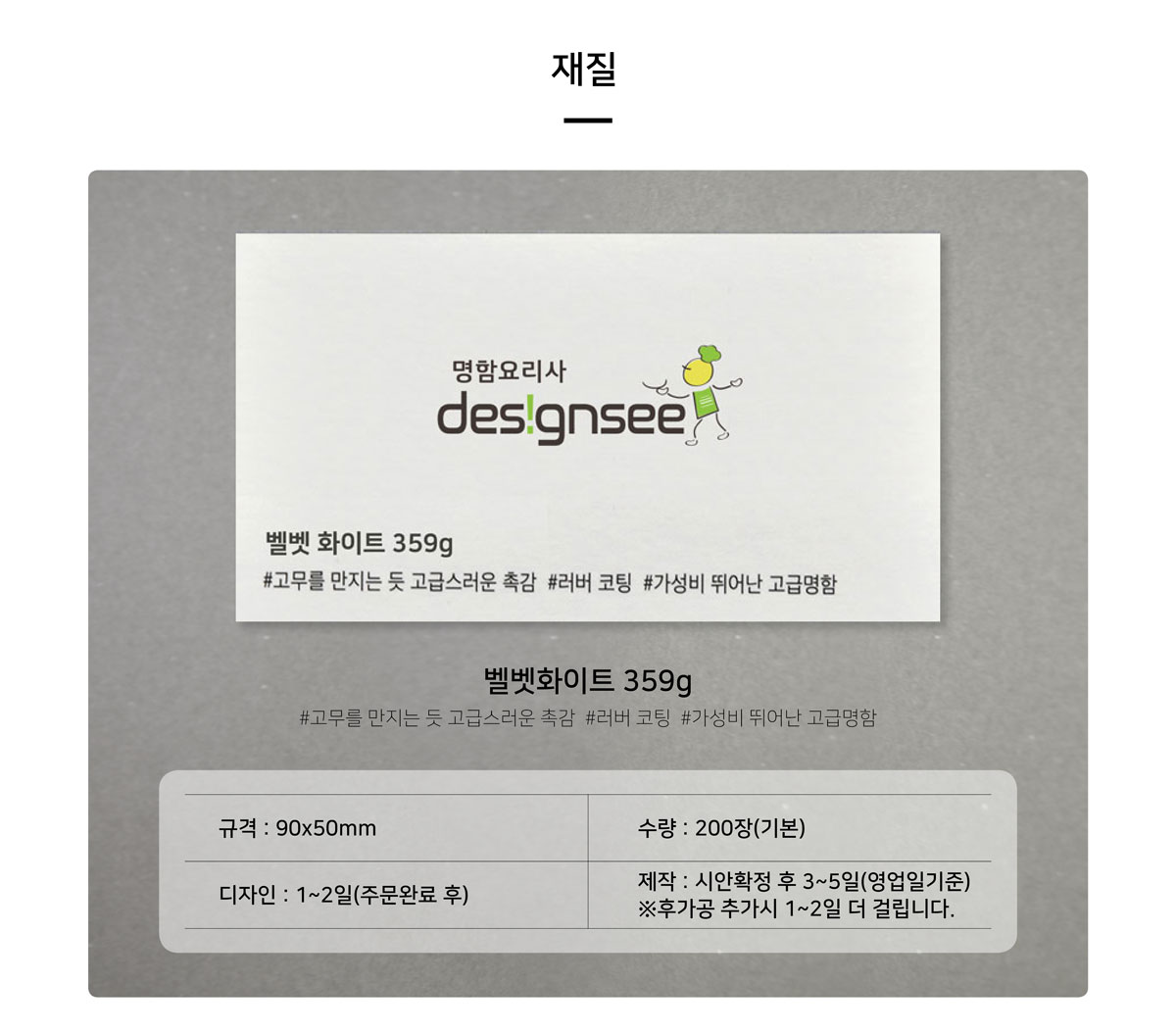 재질별명함 고급 수입지 두꺼운 명함 벨벳 화이트 359g