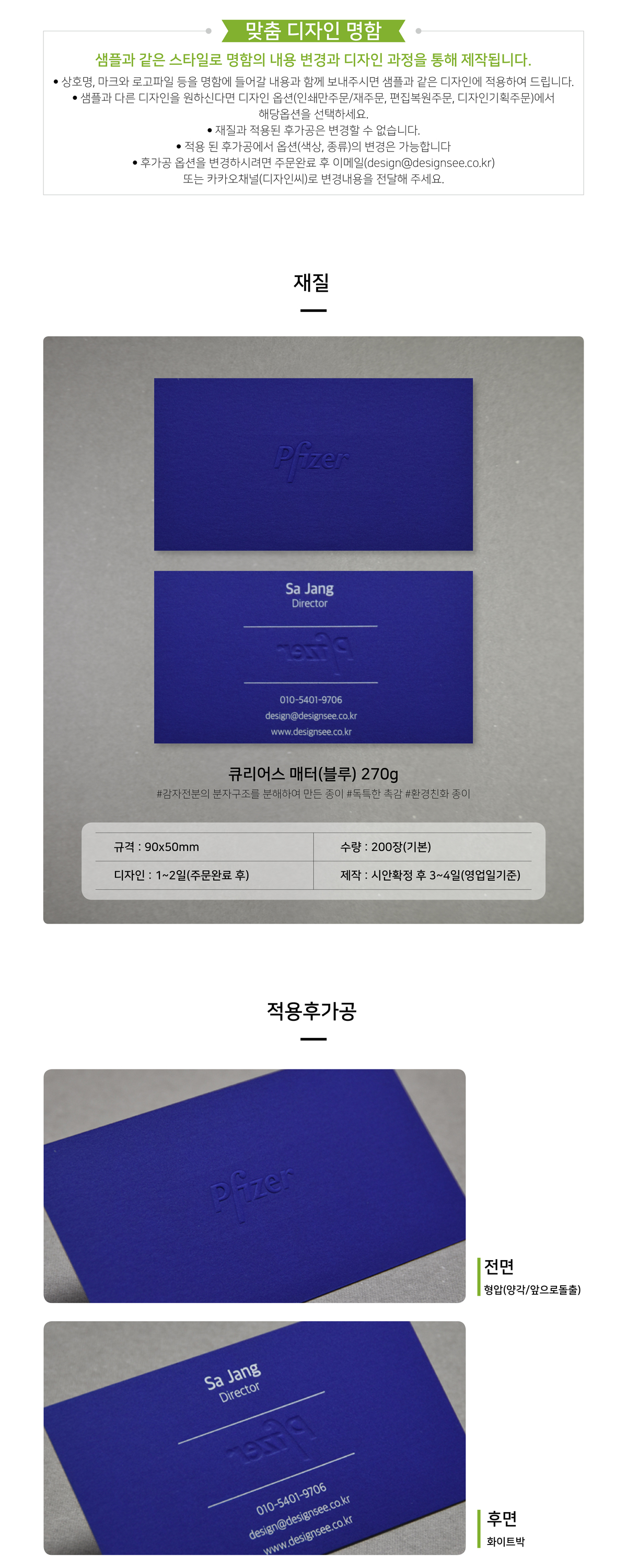 큐리어스 매터(블루) 270g 화이트박 형압(양각) 명함인쇄