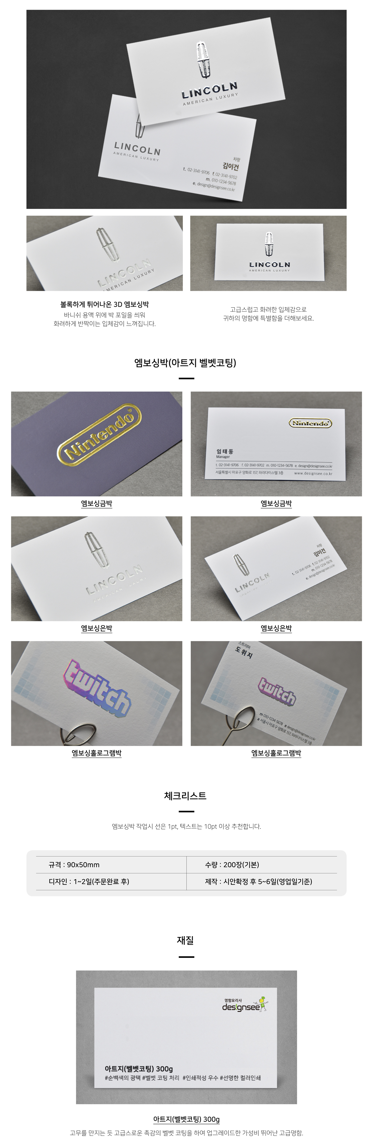엠보싱은박 단면 3D 디지털박 명함인쇄