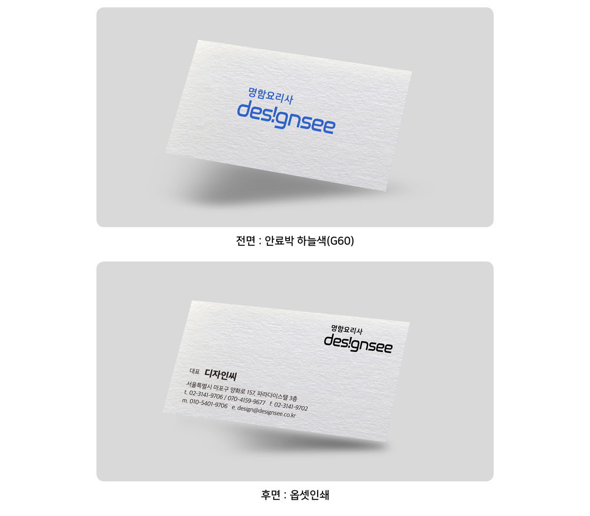 옵셋인쇄와 후가공으로 안료박(단면)을 적용한 고품격 명함입니다.