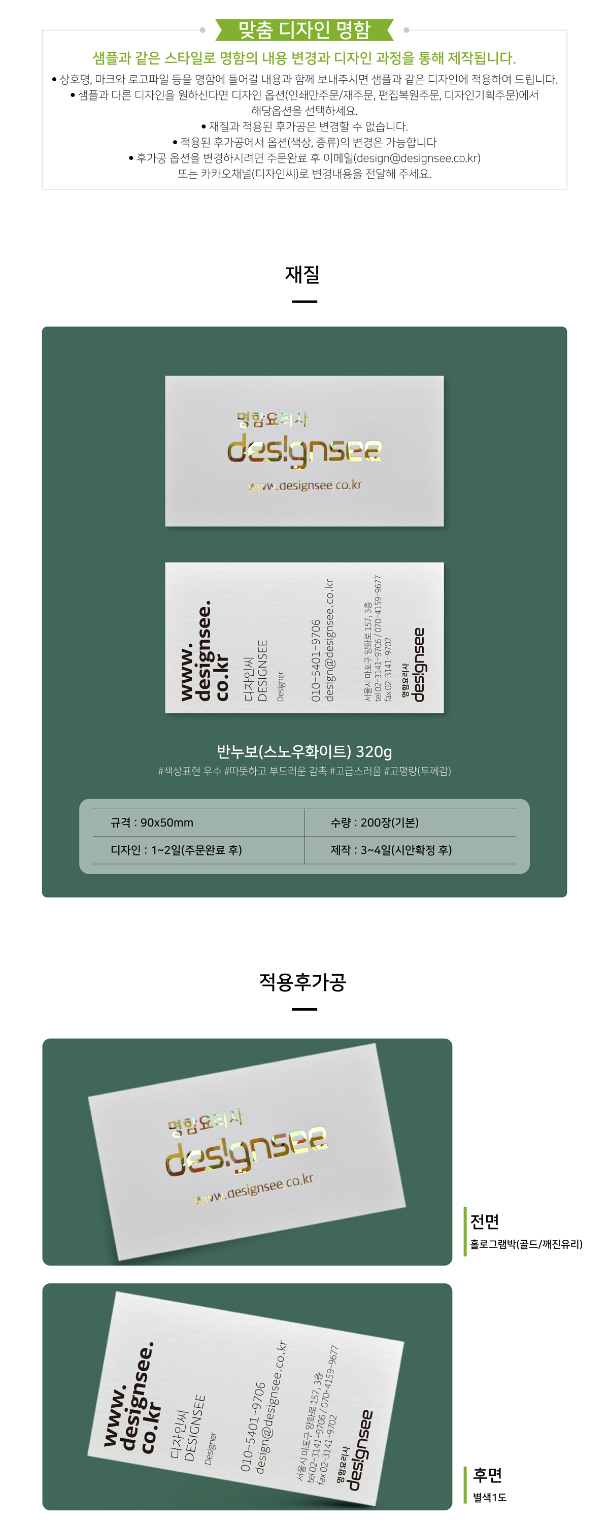 디자인 명함제작 프리미엄 반누보(스노우화이트) 320g