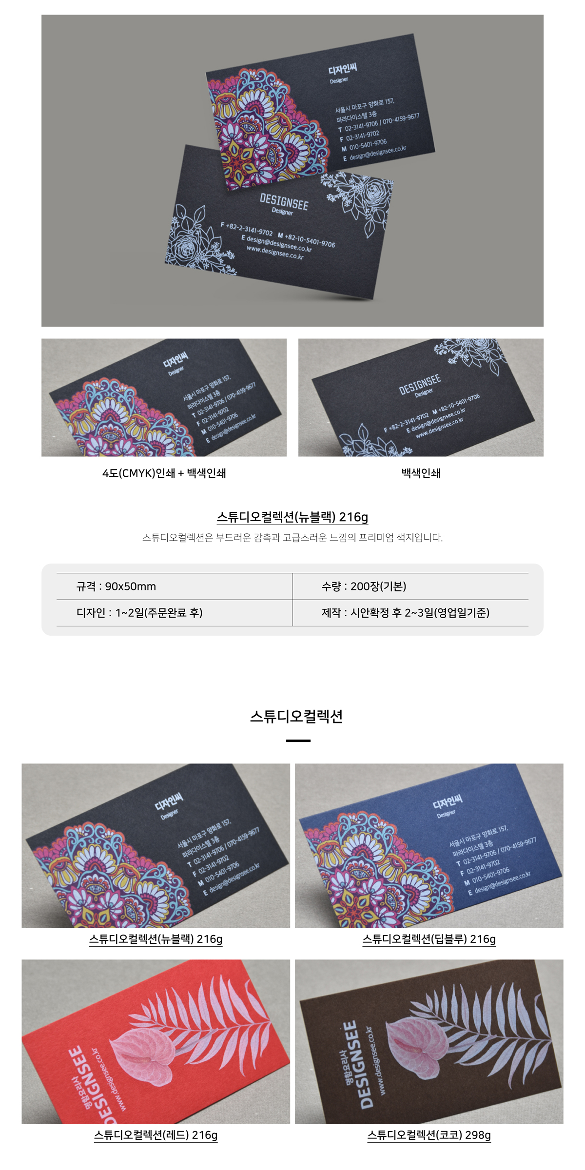 스튜디오컬렉션(뉴블랙) 216g 디지털 인쇄 명함 제작 인쇄