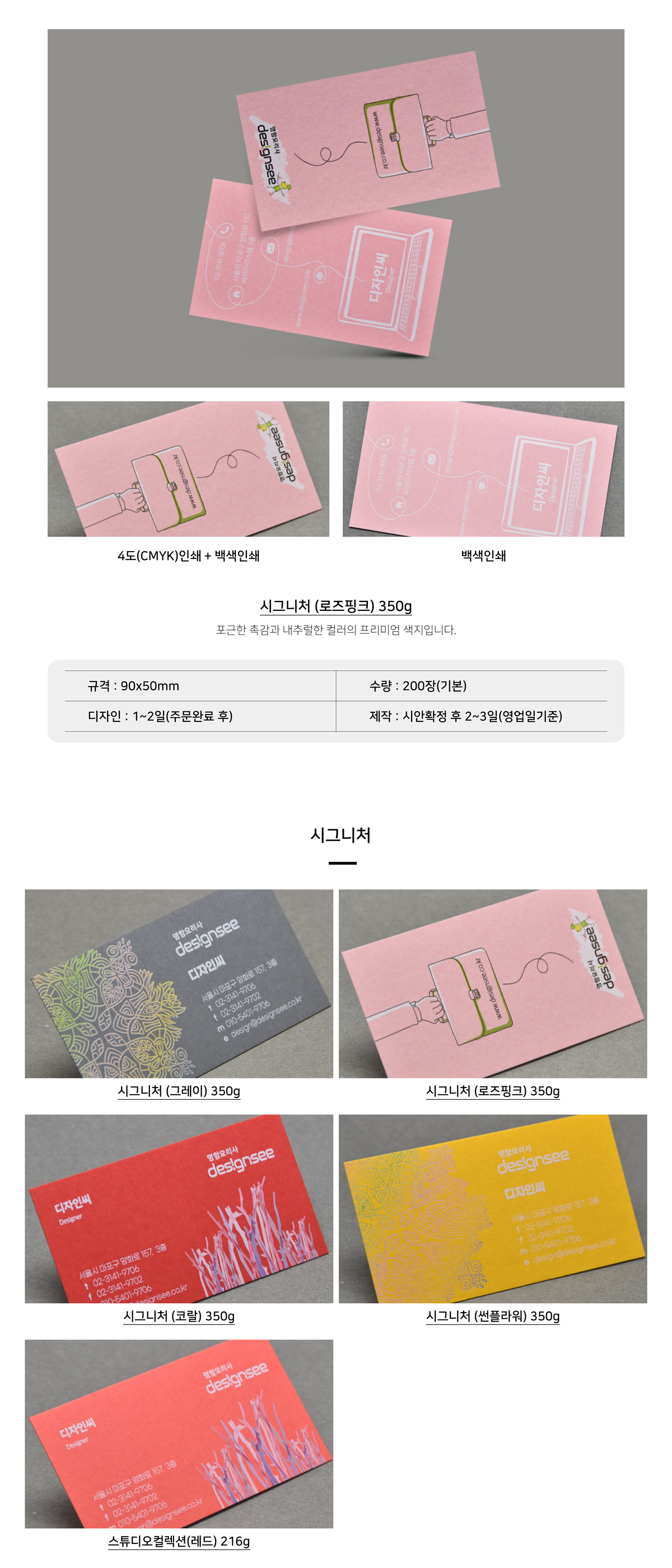 시그니처 (로즈핑크) 350g 디지털 인쇄 명함 제작 인쇄