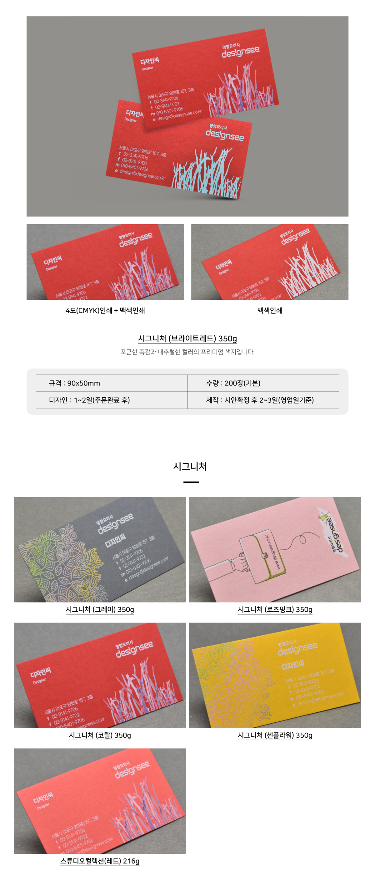 시그니처 (브라이트레드) 350g 디지털 인쇄 명함 제작 인쇄