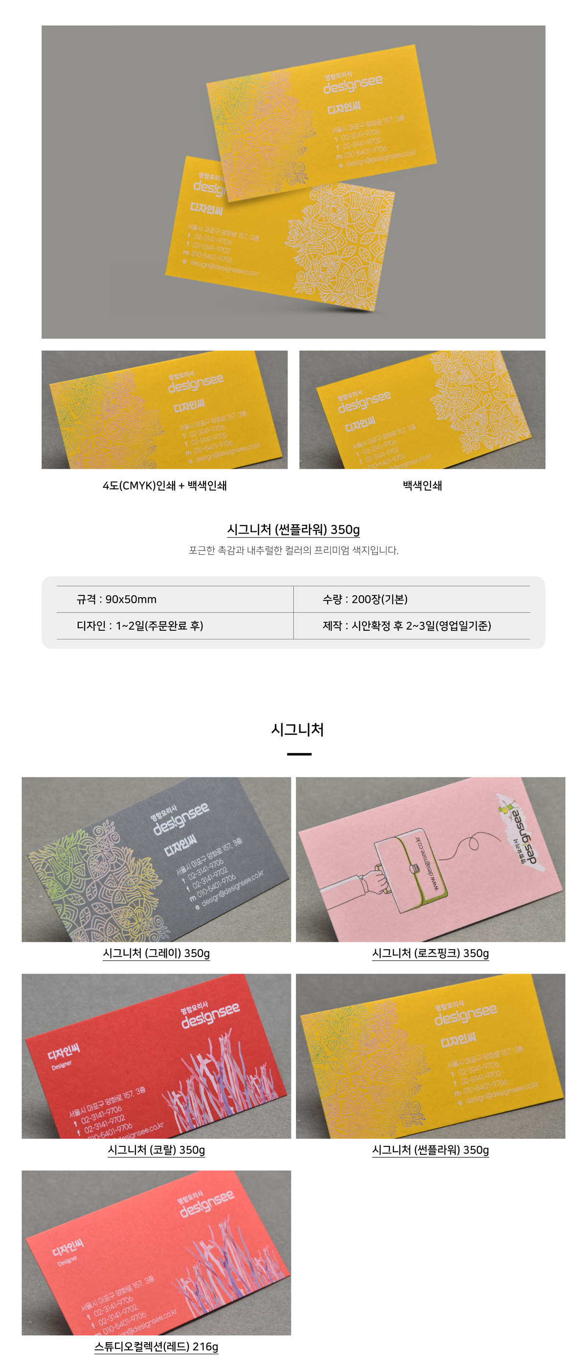시그니처 (썬플라워) 350g 디지털 인쇄 명함 제작 인쇄