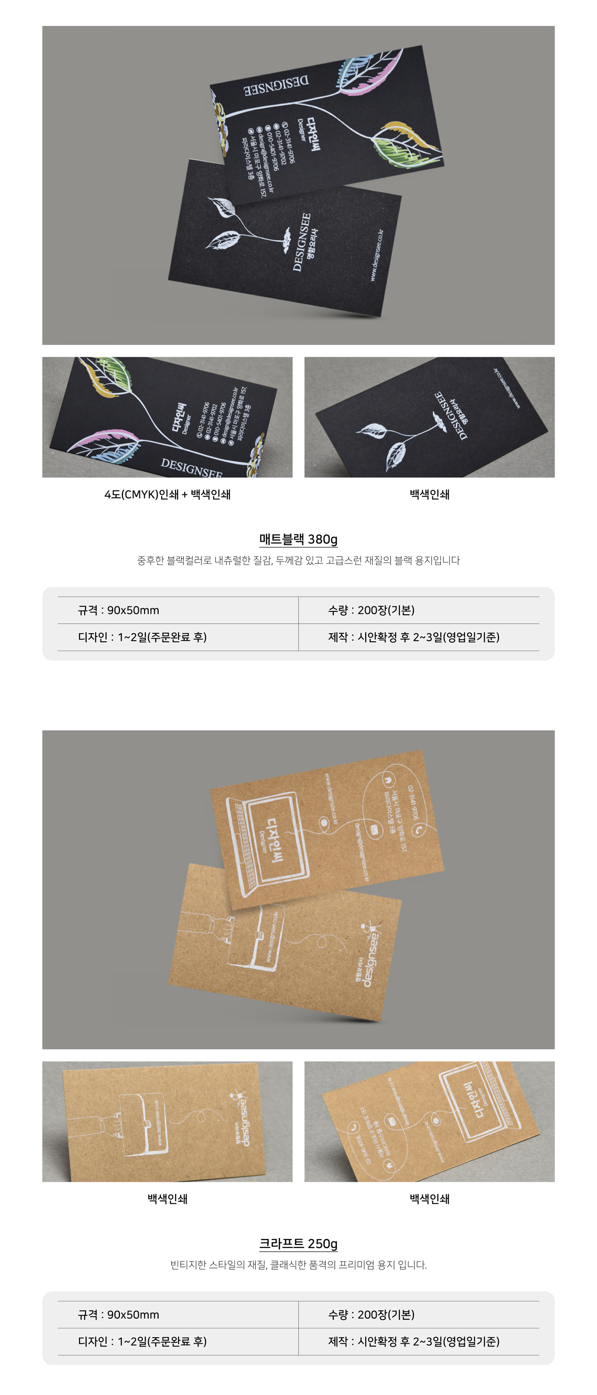 고급 색지 & 화이트 별색 & CMYK 컬러의 조합으로 화려한 나만의 명함을 만들어 보세요.