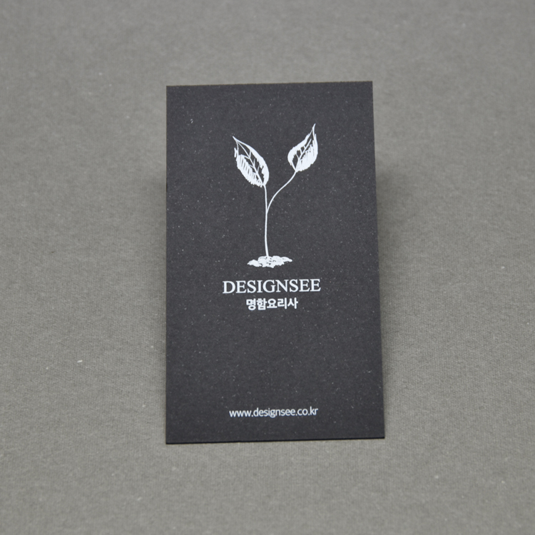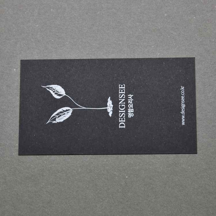 고급 색지 위에 화이트 별색 한 가지 색상만으로 심플하면서 고급스러운 명함을 표현하거나,