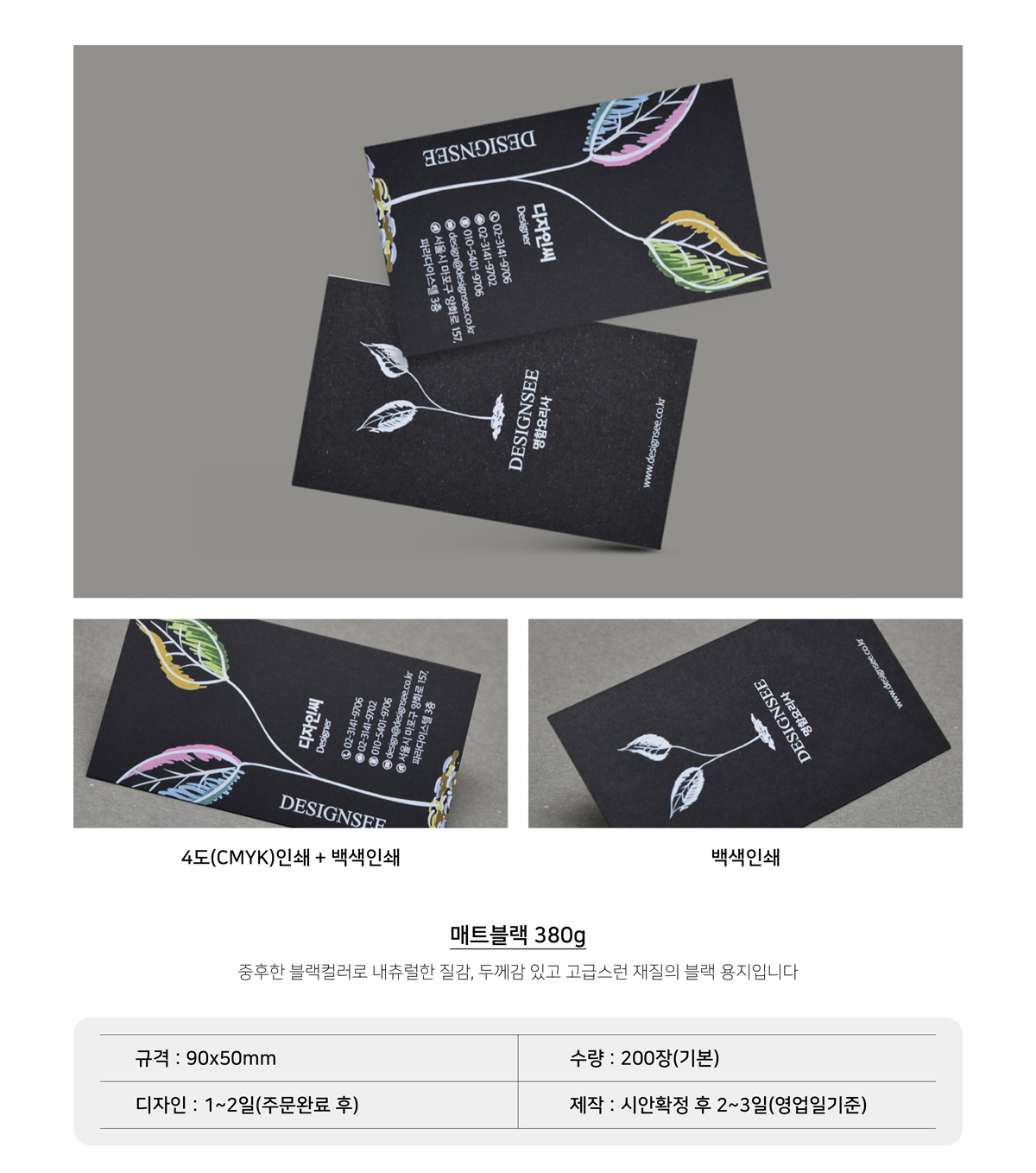 매트블랙 380g 디지털 인쇄 명함 제작 인쇄